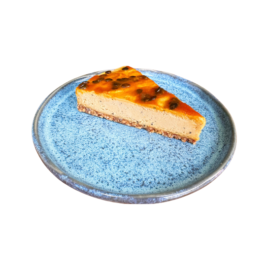 Torta feita de creme de maracujá com castanha de caju, delicadamente coberta com calda natural de maracujá, na base nutritiva de tâmaras e amêndoas. Adoçada com melado de cana. Azedinha e tropical na medida certa! Livre de glúten e lactose. Fatia de aprox. 90g.
